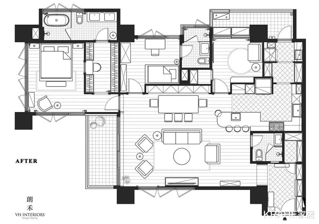 屋主长期在国外居住,希望公共区域充分利用光线,减少分隔。通过对话,布局初具轮廓,注重美学意象。