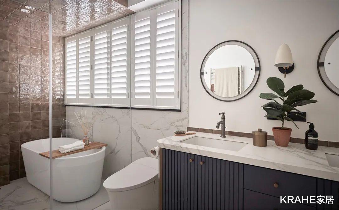 延续了玄关的弧形设计,形成了洗涤湿区的半墙造型。