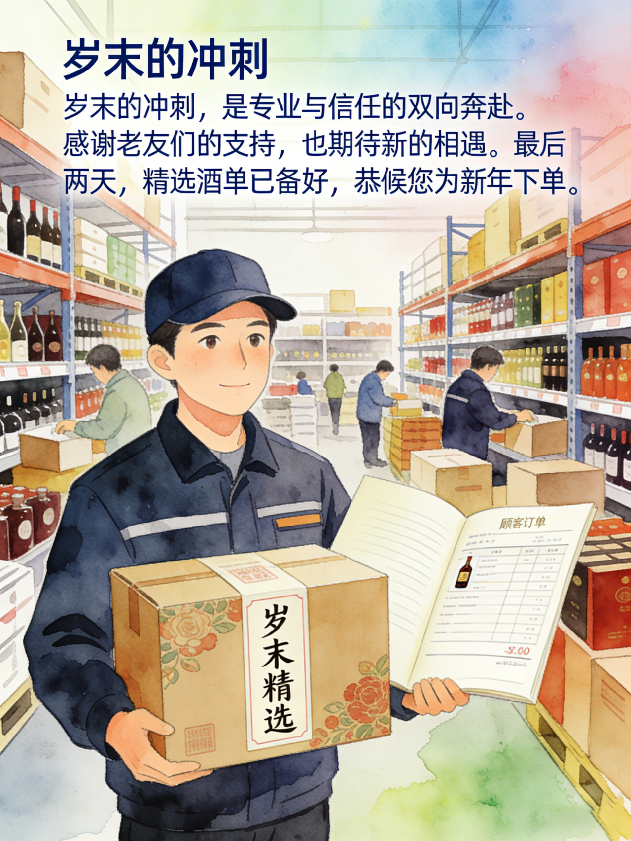 终点线在前,初心不变。我们严阵以待,确保您岁末的每一瓶酒都令人称心如意。期待您的最终确认,让我们共同抵达目标的圆满。