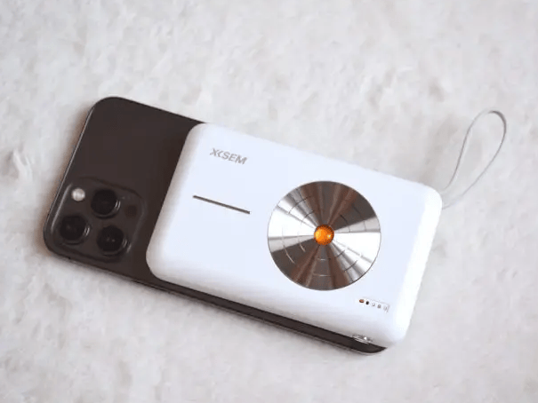 西圣无线磁吸充电宝的设计非常人性化,厚度仅有18.5mm的超薄机身设计,重量仅有204g,只手可握,拿在手上充电,也不会觉得有重量感。将它贴住手机背面充电使用的同时也并不会遮挡摄像头模组,完全不影响各种场景下手机的正常使用。