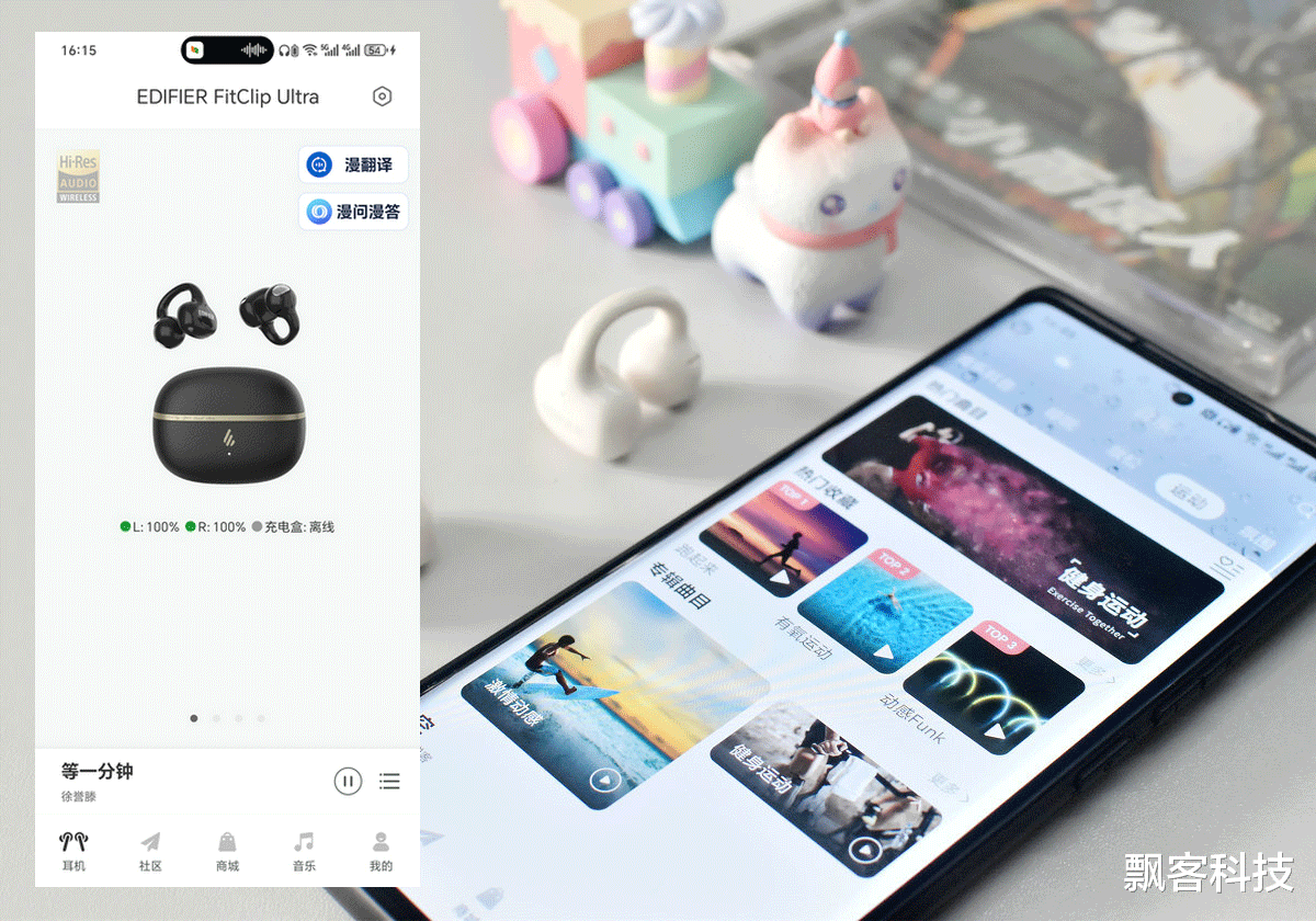 值得一提的是,APP除了设置EQ模式,还能调节LDAC采样率,选96K采样率时音质明显更细腻,但是在地铁等信号复杂的地方可能偶尔会卡顿。选44.1/48K采样率时,能兼顾音质和连接稳定性。这种可调节的设计很贴心,也体现了漫步者FitClip Ultra耳夹耳机在软硬件方面的兼顾。