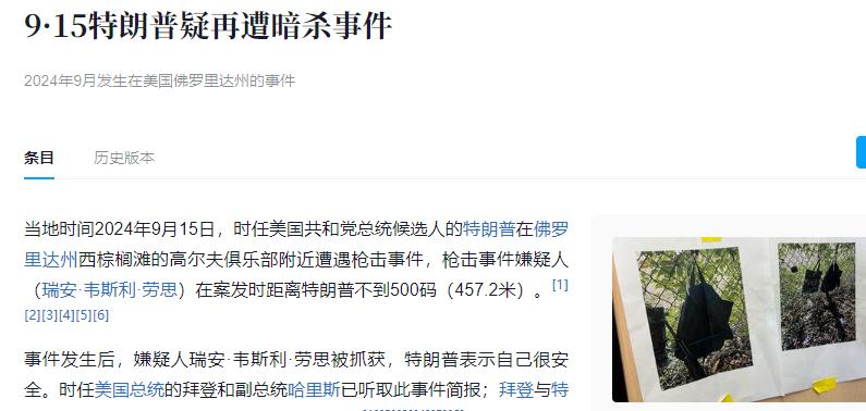 仅仅两个月后的9月,特朗普在佛罗里达州西棕榈滩的高尔夫俱乐部附近又遭遇暗杀未遂。
