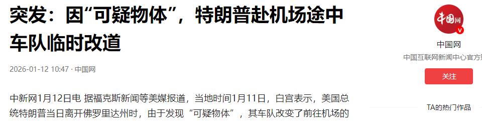 2026年1月11日,美国总统特朗普原本计划从佛罗里达州的海湖庄园,出发前往棕榈滩国际机场。