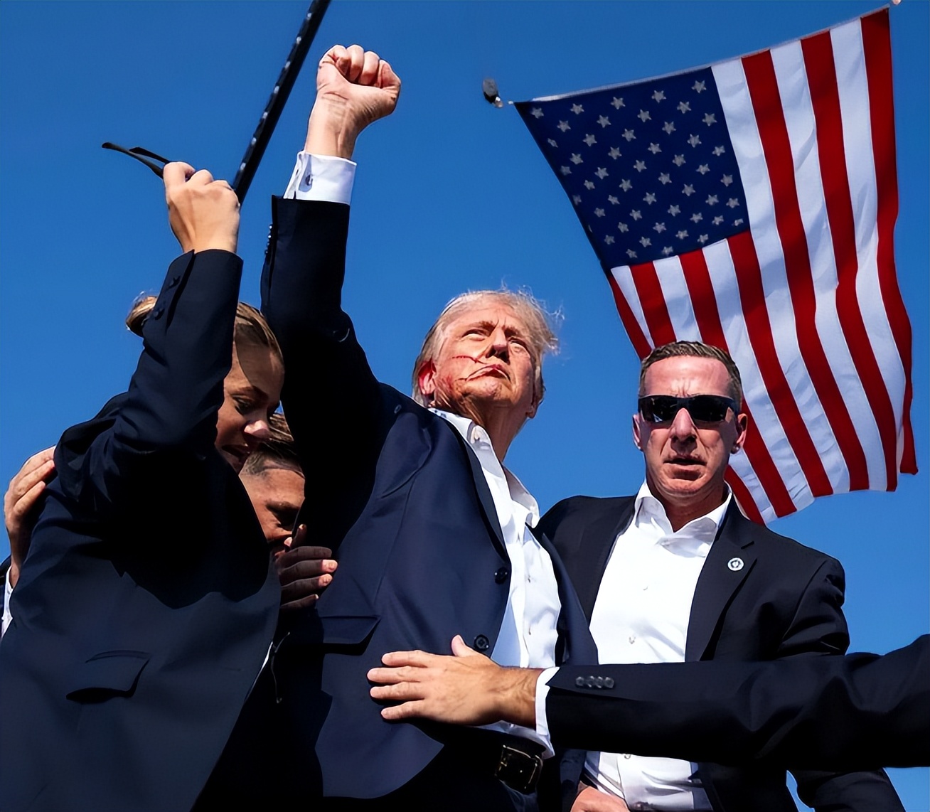 在前年2024年7月13日,特朗普在宾夕法尼亚州巴特勒市的竞选集会上发表演讲时。