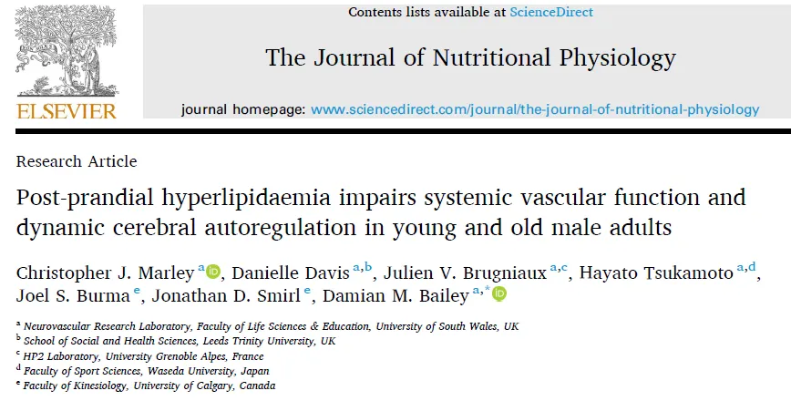 [4]Marley C J , Davis D , Brugniaux J V ,et al.Post-prandial hyperlipidaemia impairs systemic vascular function and dynamic cerebral autoregulation in young and old male adults[J].The Journal of Nutritional Physiology, 2025, 2.DOI:10.1016/j.jnphys.2025.100005.