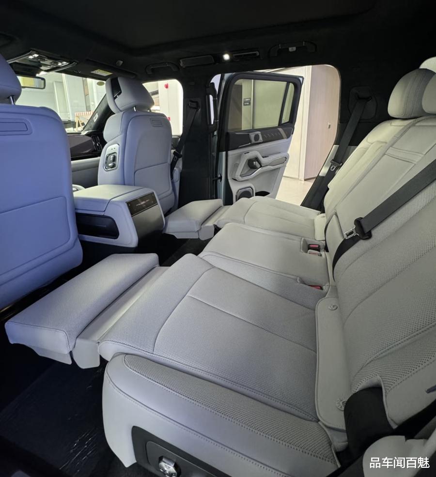 乘用性表现方面,其长宽高分别为5195/1994/1875(含车顶行李架1905)mm,轴距为2920mm;虽然尺寸并未发生调整,但毕竟取消了第三排座椅,这让其后排腿部与后备箱空间变得更为充裕。而具备四向可调节腿托的后排零重力座椅,搭配后排控制面板、可实现前排扶手箱开启以及后排拖出的双开门车载冰箱等配置,则让其具备着更为高端化的舒适性体验。