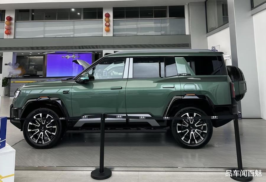 车身侧面部分,该车依然会在标准化的“方盒子”硬派设计理念加持下,显得高大威猛。而新增的湖光绿配色,除了能加深其专属的身份辨识度以外,在一定程度上还能提升其侧颜的“硬汉”画风。
