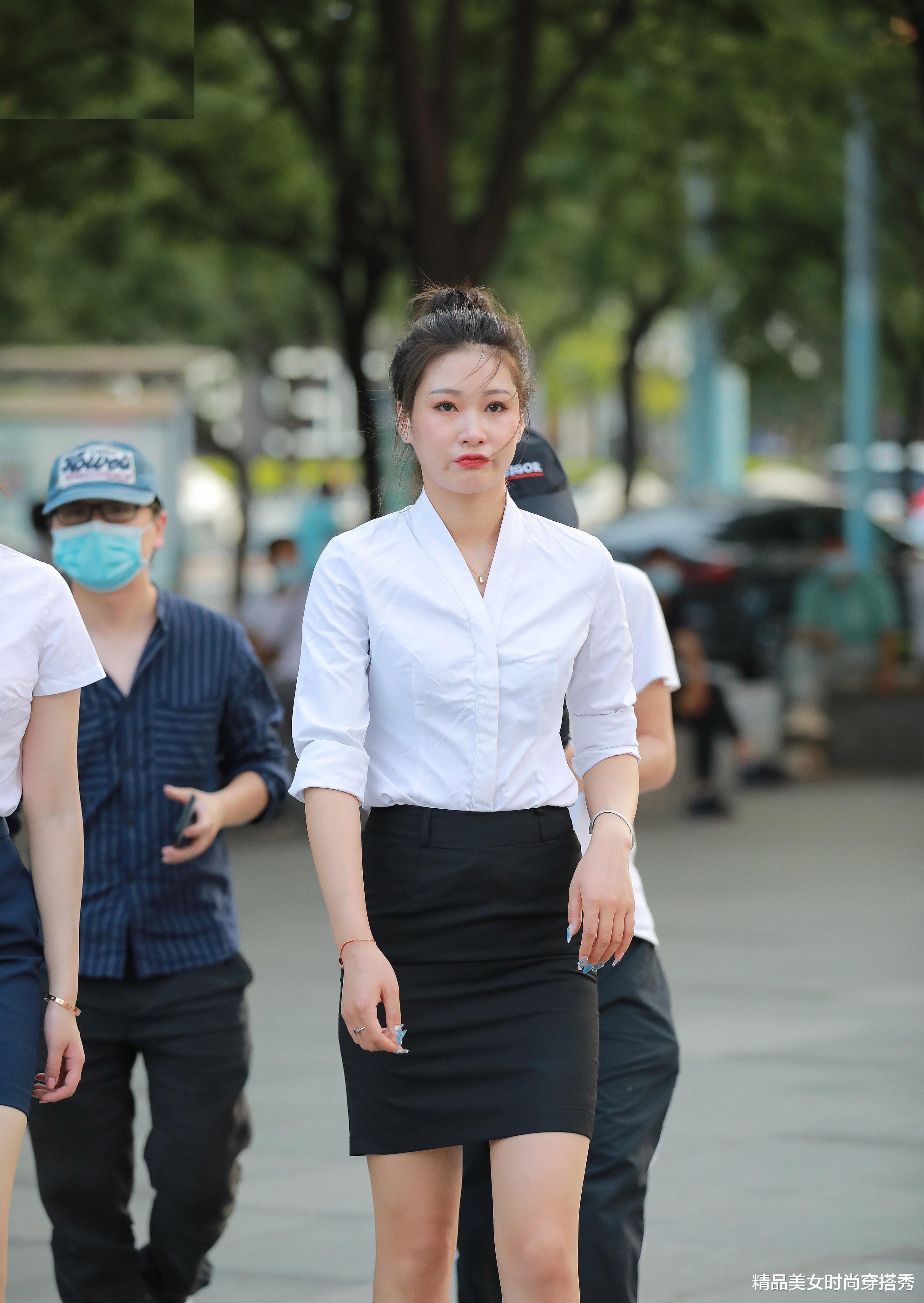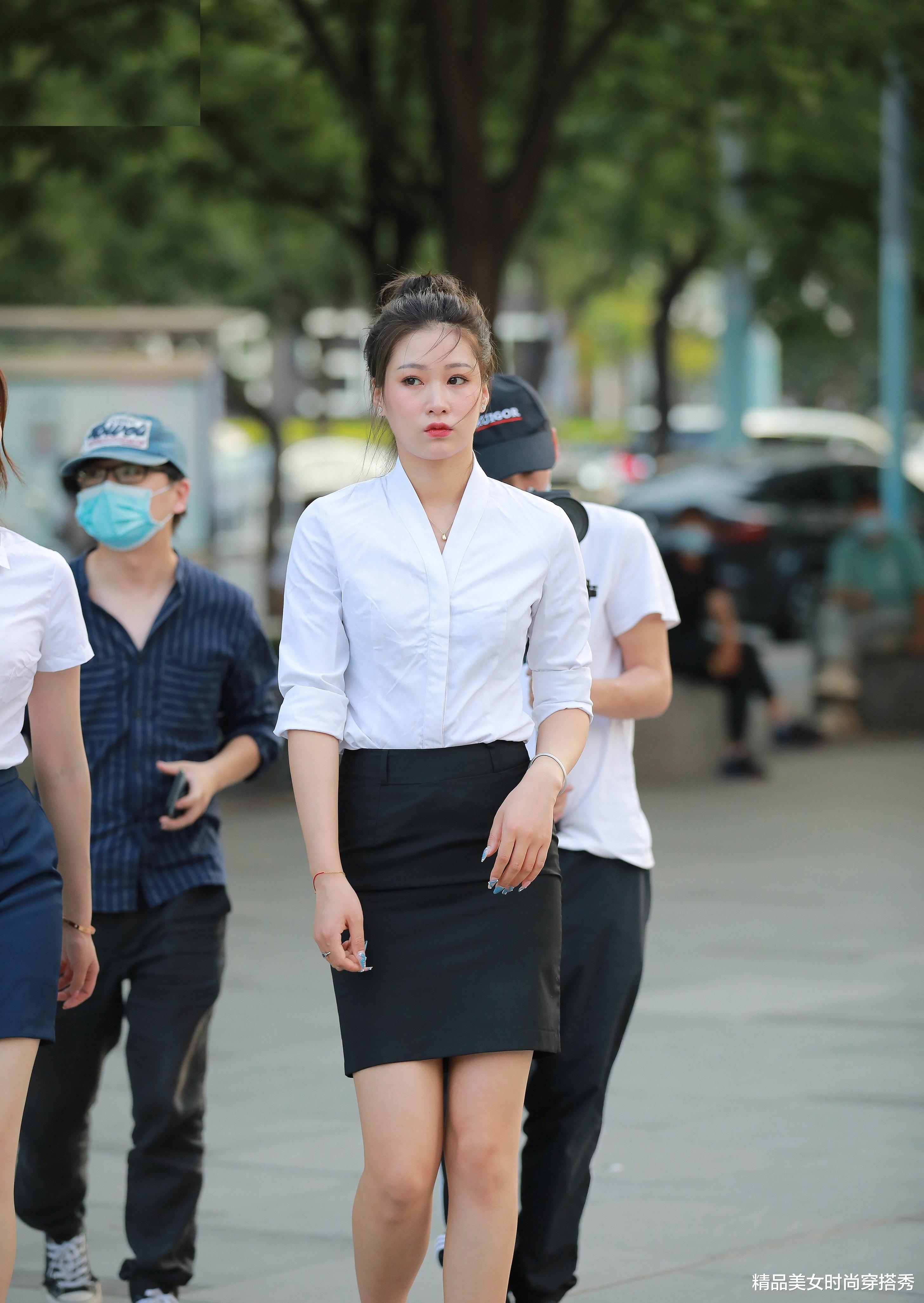 白衬衫+黑包臀裙,职场时尚的经典爆款组合!