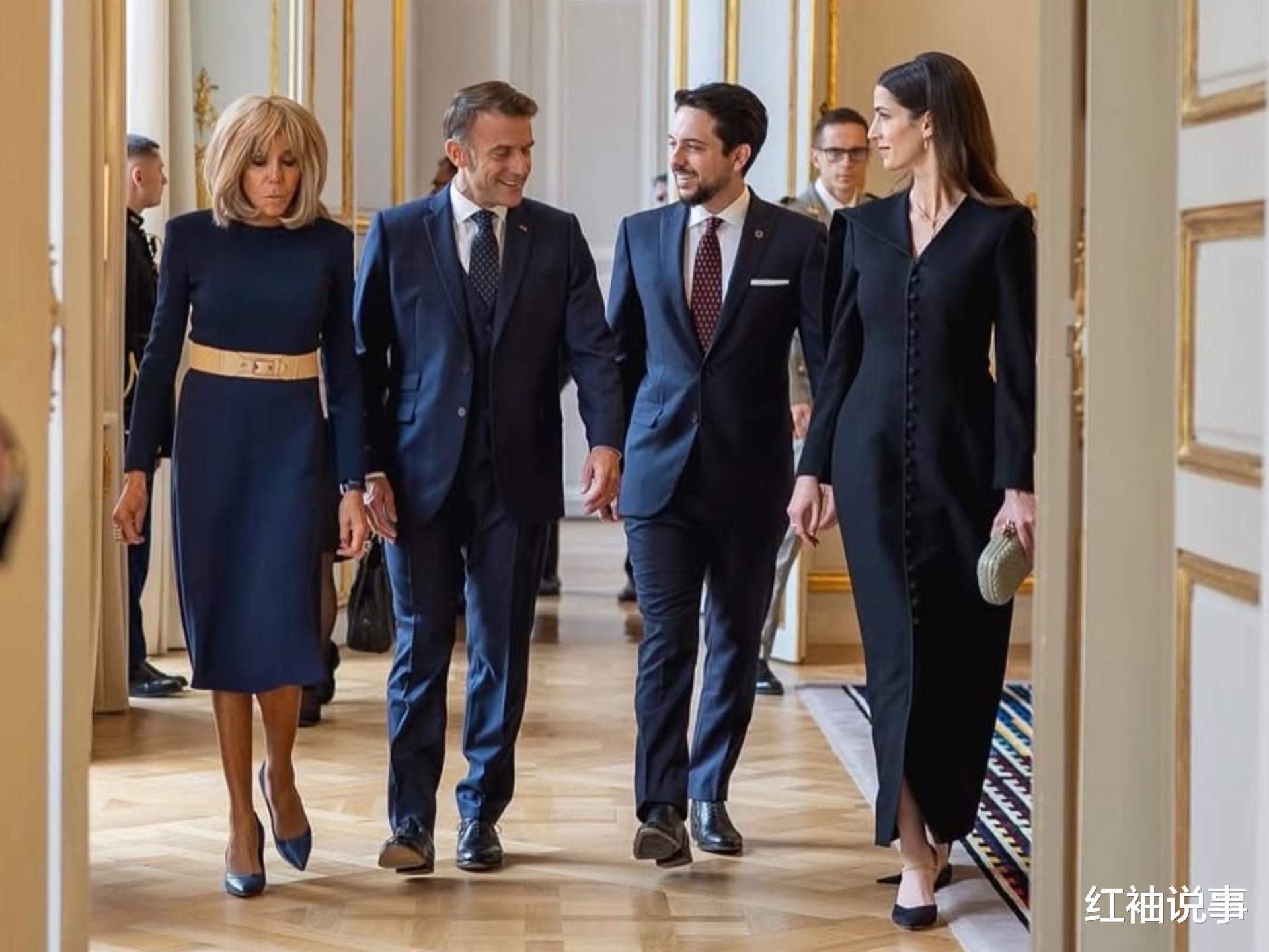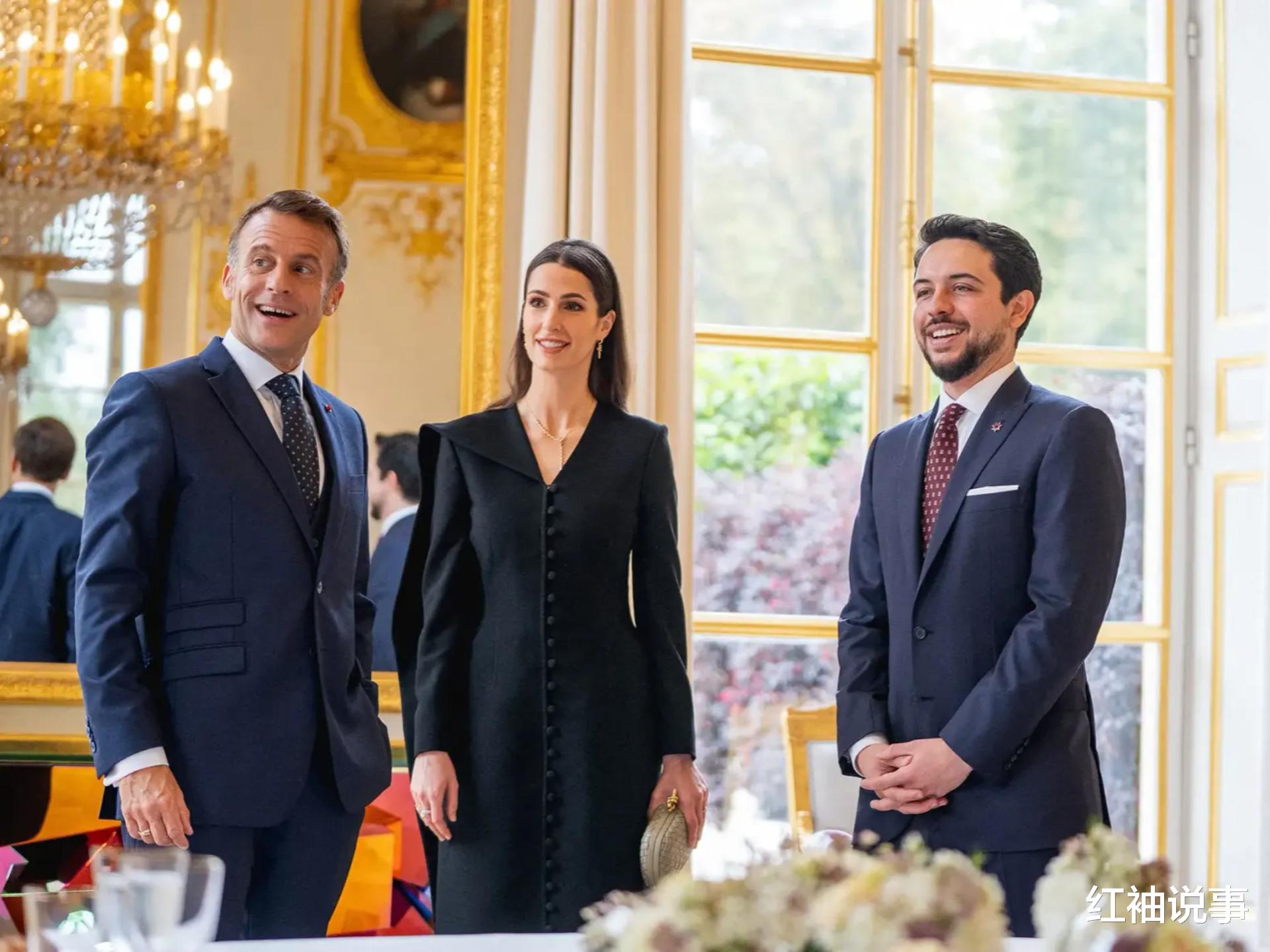 约旦王储妃访问法国,一袭小黑裙又仙又美,颜值胜过布丽吉特