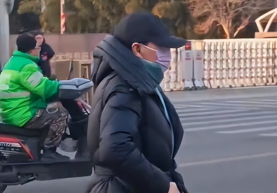 她穿着羽绒服,口罩戴得严严实实,很低调。