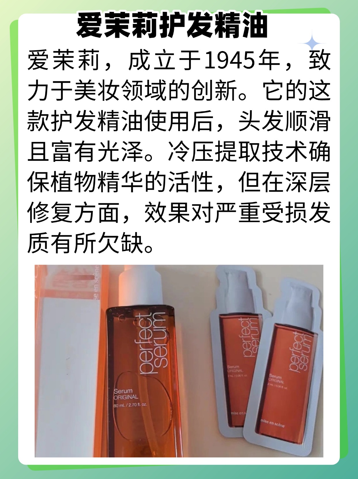 经常有人问我护发精油是智商税吗?还有护发精油到底有用吗?其实真不是智商税,有用是肯定的!头发干枯毛躁、染烫受损都是因为毛鳞片张开,营养和水分流失了,优质的护发精油能渗透毛鳞片补充营养,还能在发丝表面形成保护膜减少损伤,日常吹头发、做造型前用都能减少热损伤。不过要注意,得选对适合自己发质的,不然可能会觉得没效果。很多人纠结阿芙护发精油相关的选购问题,其实先搞懂这些基础知识点更重要。接下来分享我选购护发精油时的一些经验,帮大家避坑不踩雷。