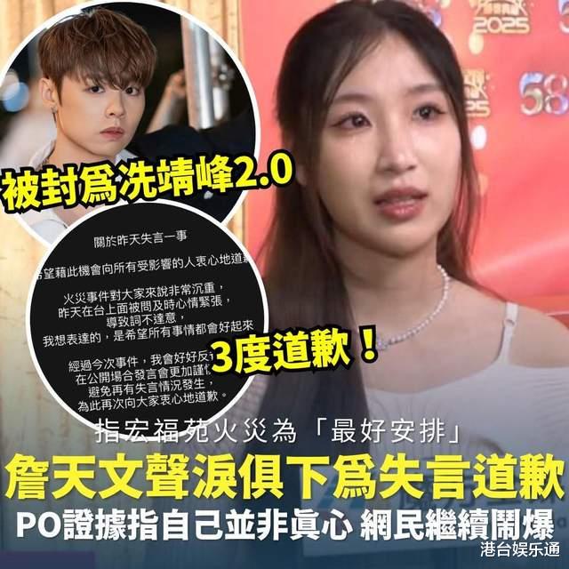据《01娱乐》、《星岛娱乐》、《娱壹》、《东方新地》、《Yahoo娱乐圈》等香港娱乐媒体报道,新城电台日前举行《我们的大热唱2025》,设有为大埔宏福苑灾民送上祝福的环节,出席的歌手每人手写祝福语并在台上念出,但詹天文念出来的内容对灾民来说,简直是在伤口上撒盐。下图为相关报道截图: