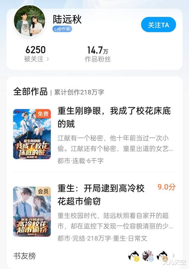 另外《重生:开局逮到高冷校花超市偷窃》的陆远秋也有开了新书,只是还是首发QQ阅读,起点这边要等改签后才能同步过来。