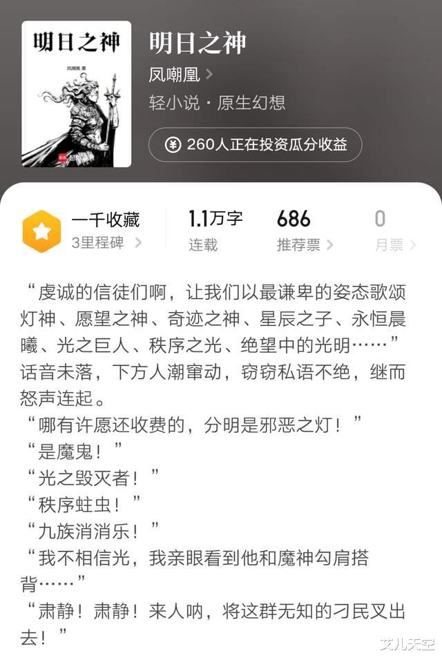 大神凤嘲凰在今天开了新书《明日之神》,原创类的魔法题材,上本修仙文完结后休息了八个多月。
