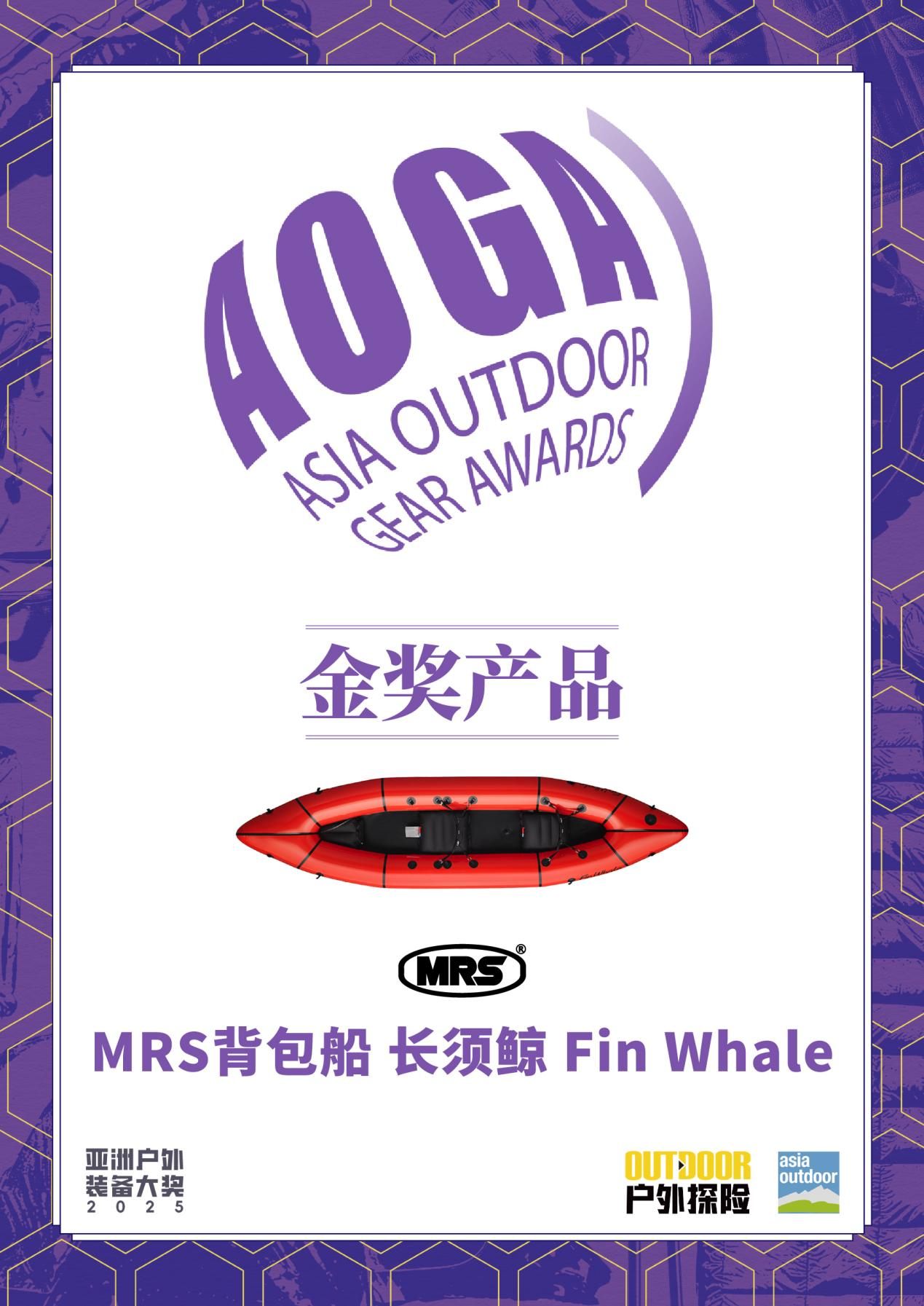 2025亚洲户外装备大奖获奖结果于2026年2月揭晓,MRS全新船型长须鲸凭借扎实的产品设计与出众的用户体验,荣获金奖。这是继2024年MRS勘探员(Surveyor)在技术装备类目中脱颖而出、斩获金奖后,该品牌再次登上亚洲户外装备最高领奖台。