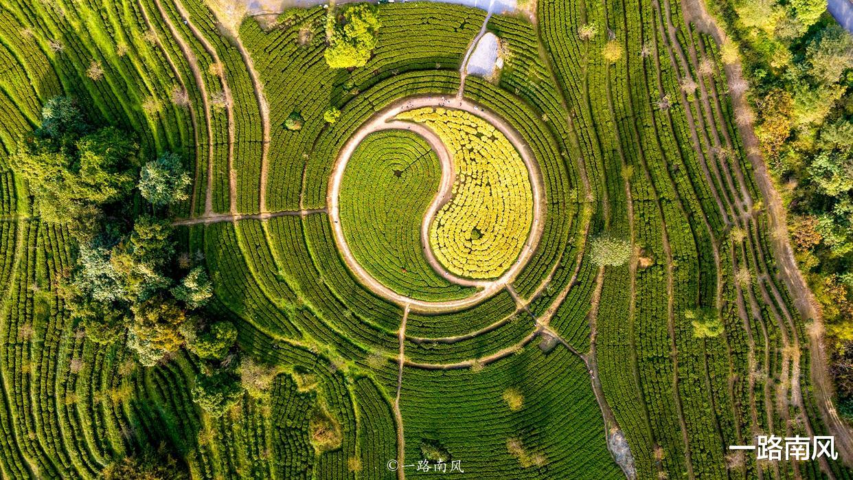 积庆里的茶田沿着山势分布,八卦形茶园位于小山头的最高处。
