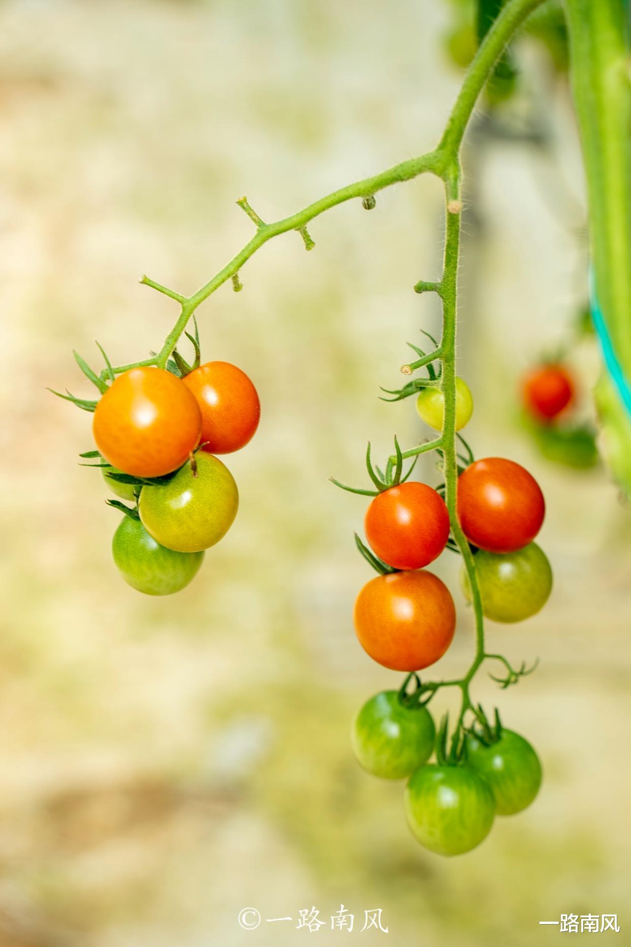走进水果种植大棚,体验采摘的乐趣,小小的番茄甜到入心。