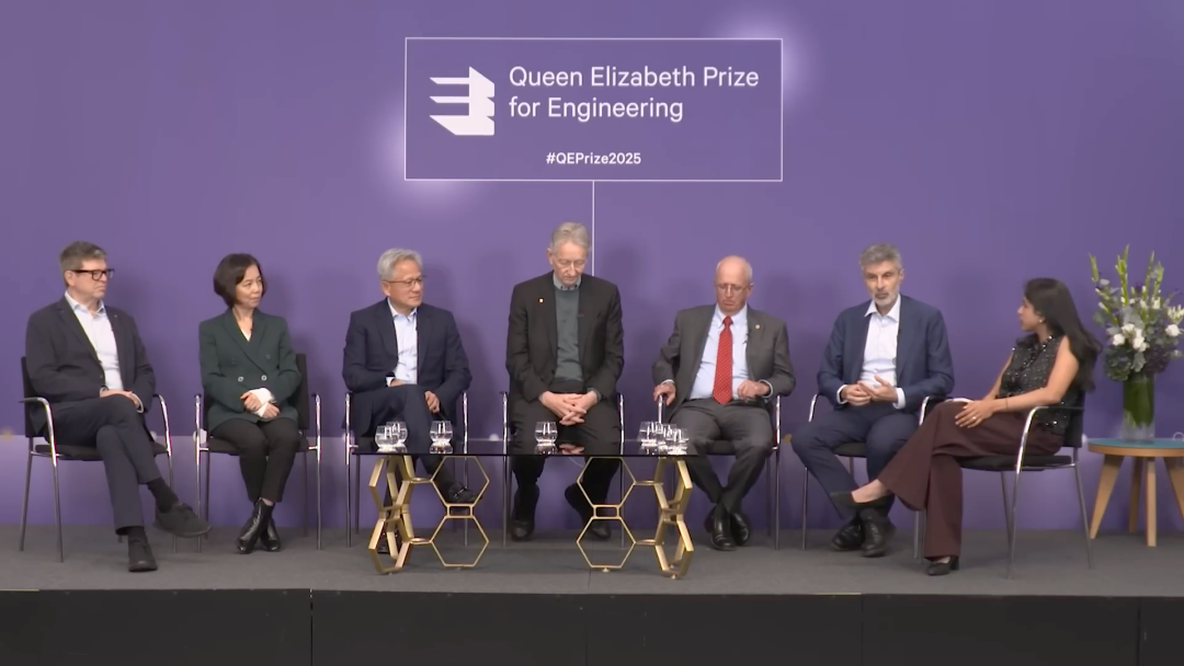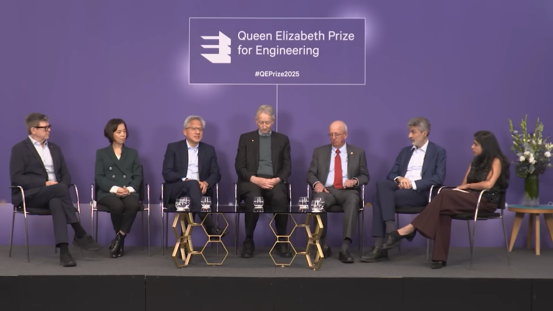 本次圆桌访谈汇聚了2025年伊丽莎白女王工程奖六位得主——深度学习"三巨头"杰弗里·辛顿(Geoffrey Hinton)、杨立昆(Yann LeCun)、约书亚·本吉奥(Yoshua Bengio),NVIDIA掌舵者黄仁勋(Jensen Huang)与首席科学家比尔·戴利(Bill Dally),以及ImageNet创建者李飞飞。