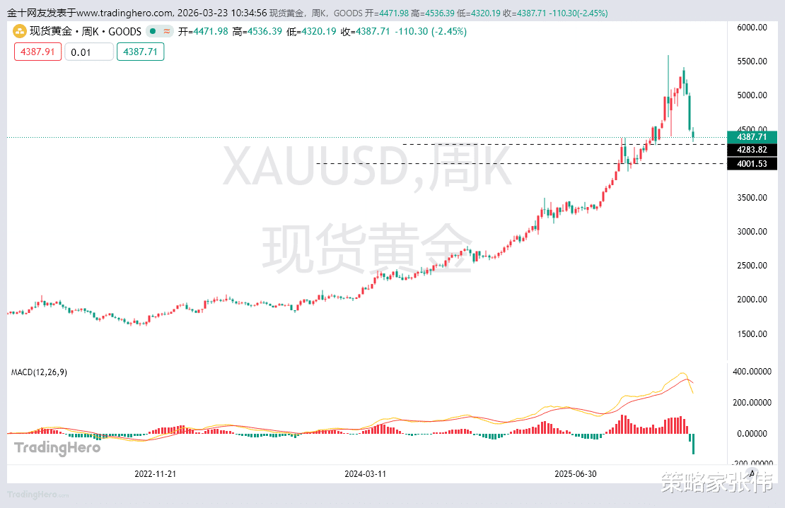 黄金周线级别已经出现三连阴,本周继续往下周将会出现4连阴的局面。