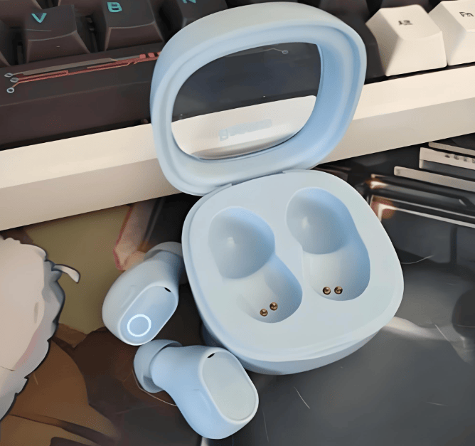 佩戴极致轻便,单只耳机仅重2克,外形小巧如莲子,采用奶嘴级液态硅胶材质,亲肤柔软,佩戴后几乎无异物感,侧睡时完全不压耳,翻身也不易脱落,敏感耳道可尝试。