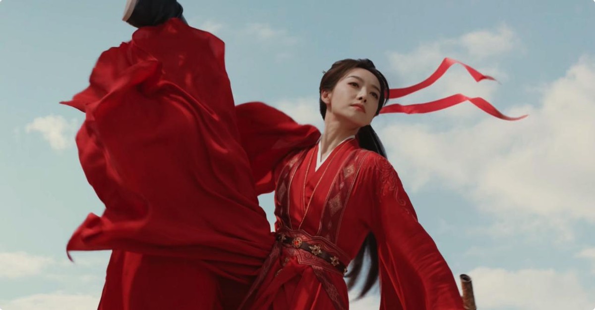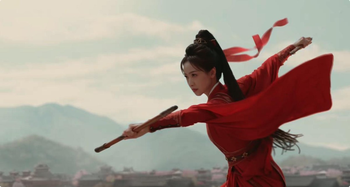 她的出场,红衣翻飞、剑光冷冽,动作干净利落,肩背挺直,目光如刀。