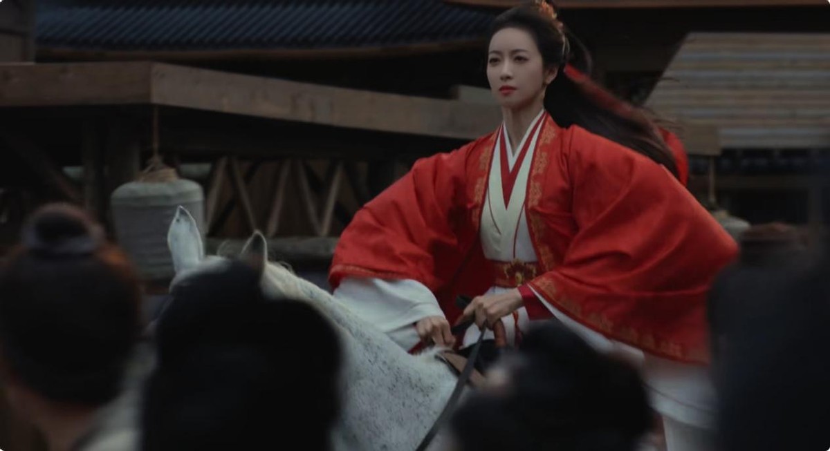 就在他扶棺归京、举国哀悼之时,一身红衣的女将楚瑜(宋茜饰)策马而来,断发嫁棺,这一幕,直接封神。