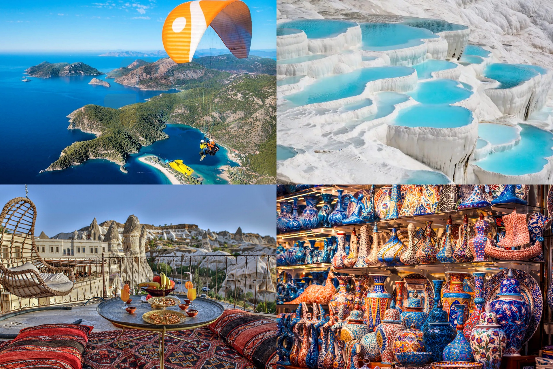 ⌛深度玩法🪂死海海滩,滑翔伞最佳起飞点👑棉花堡温泉浴,享受古罗马贵族体验💖卡帕多奇亚洞穴酒店,看热气球灯光秀专属卡帕的浪漫🏺大巴扎集市,用一半再一半的哲学讲价