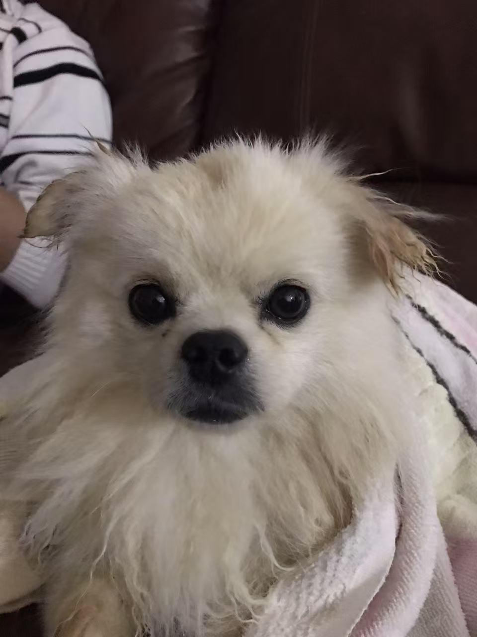 爱犬名叫“乖乖”,浅黄色博美犬,公犬,6岁大,7斤左右。