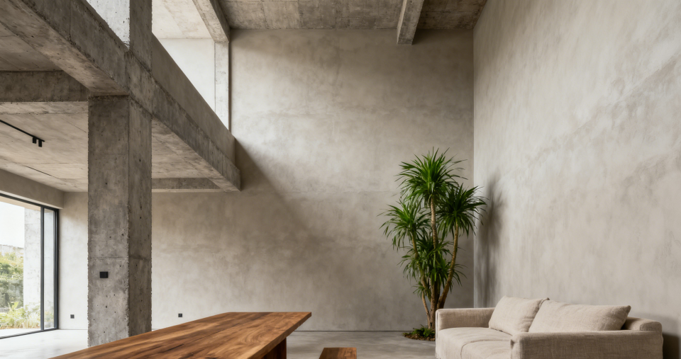 自由职业者D女士,买下了一间老旧公寓,她保留了一部分原始的水泥梁柱,墙面做了微水泥处理,搭配大量的绿植和原木家具,打造出一个充满呼吸感的“都市洞穴”。