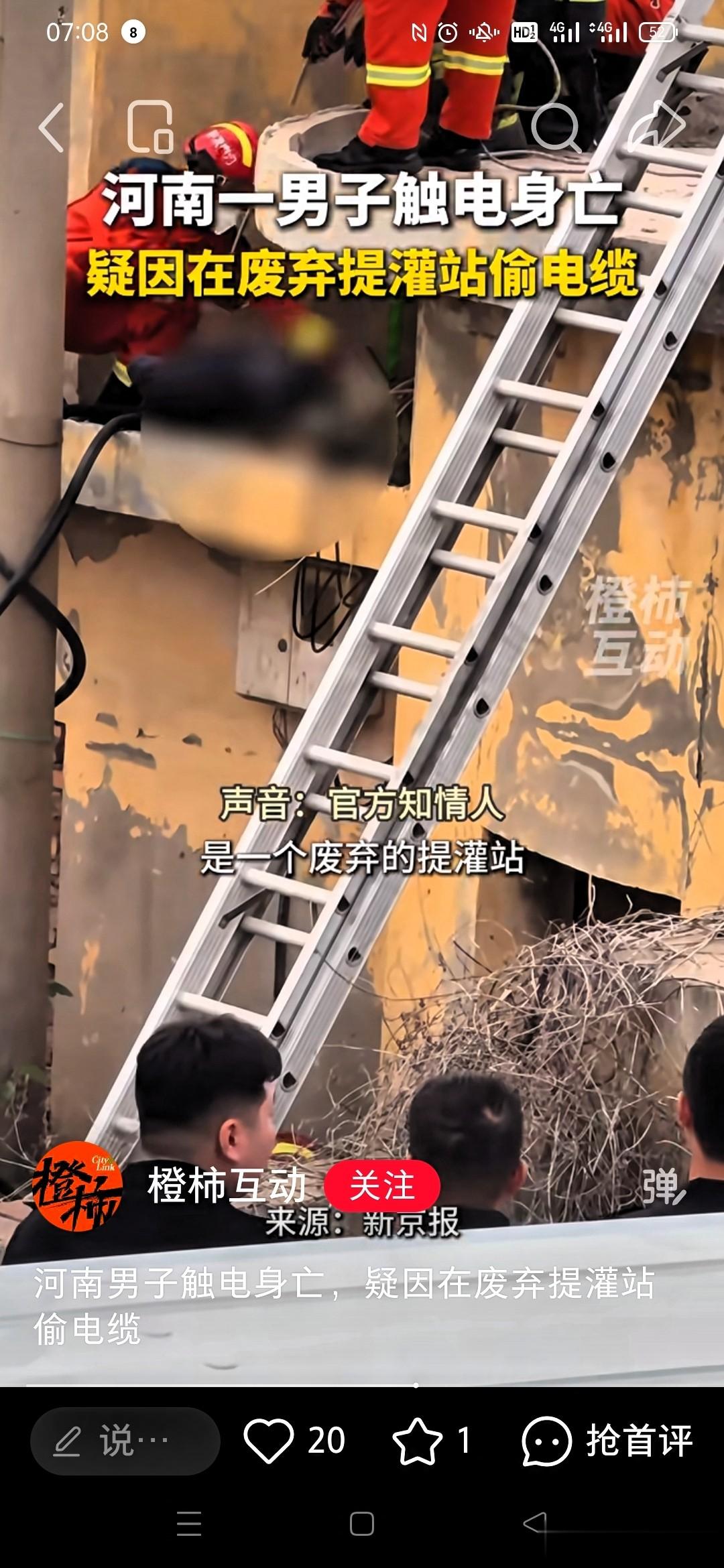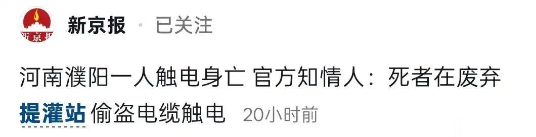 4月13号下午没的。地点在一个废弃的提灌站。官方透出来的信说,这男的是去偷电缆,结果是个笨蛋小偷,倒霉催的直接触电走了。