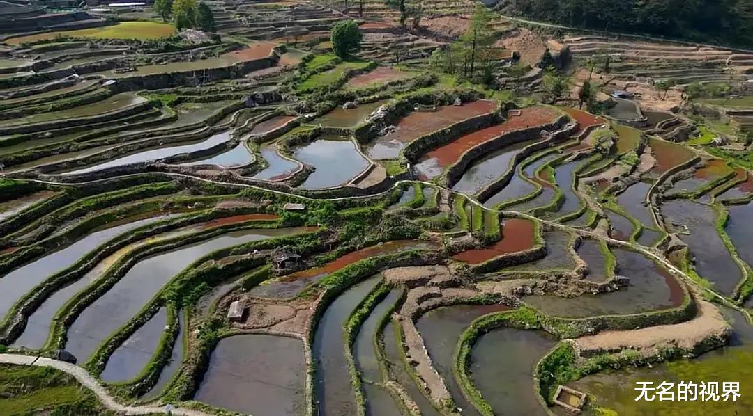哈尼梯田修筑于红河南岸的山坡上,它大小不一层层叠叠、蜿蜒伸展,从山脚一直延伸到山顶,形成了一眼望不到尽头很吸引人关注的自然风景,就像是神降的天梯般挺拔而秀美,又仿佛是大地冒出的指纹,如此美丽的景象让人有一种震撼心魄的感觉,也让人佩服和感叹到古人改造自然的力量竟然如此伟大,从无人机俯视梯田的田埂曲折迤逦,勾勒出优美流畅的曲线,这片梯田有些是平行、交错,或弯曲还有笔直,大小都不一样构成了一幅充满韵律感的画面。