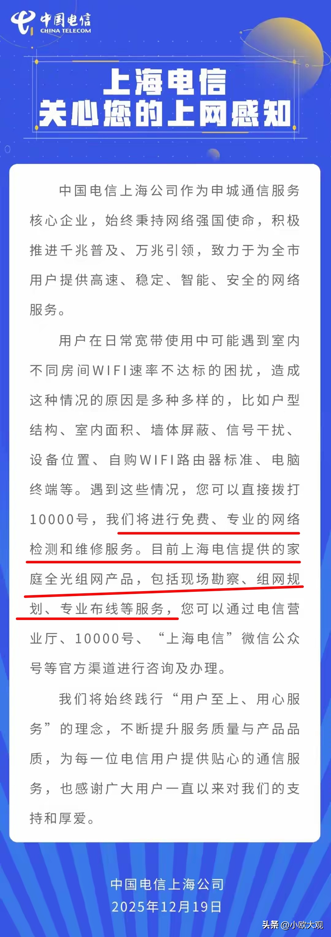 很快上海电信就对此做出来回应,并免费检测并解决这个问题。