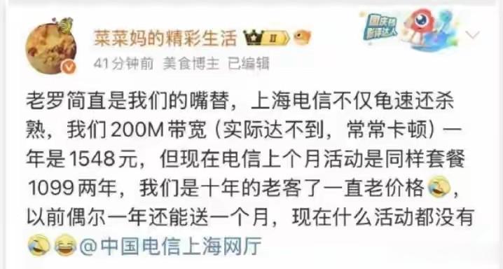 此帖一经发出,瞬间戳中几十万上海电信用户的痛点,大家纷纷晒出自己被宽带速度缩水的遭遇。