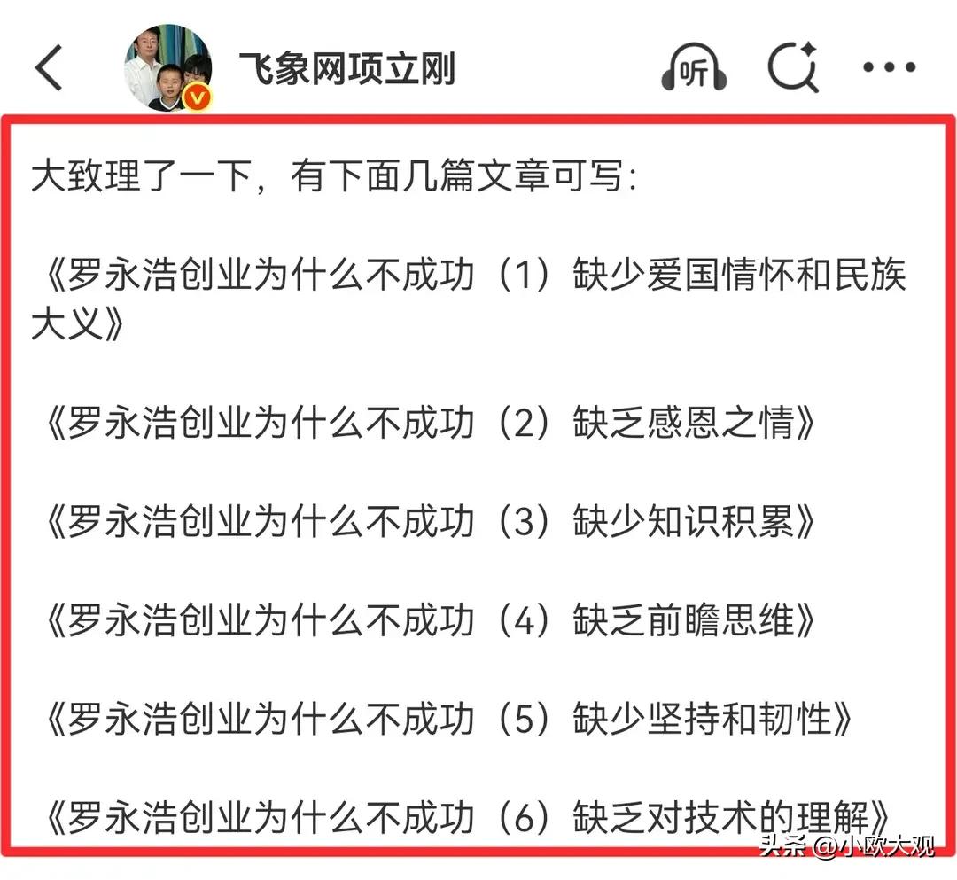 矛盾甚至升级到项立刚对罗永浩创业不成功原因的一系列分析,以此来证明他的智商。