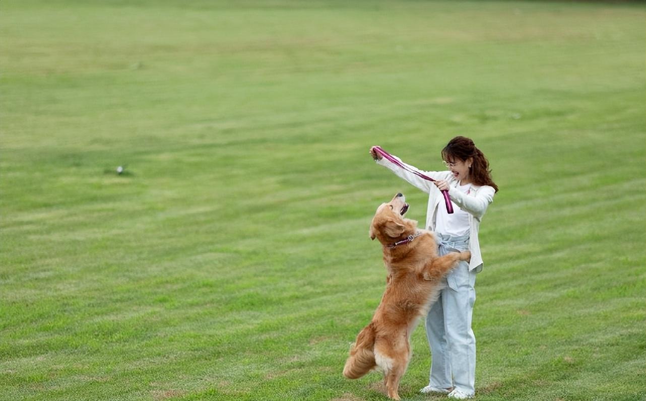 和爱宠一起漫步田野。
