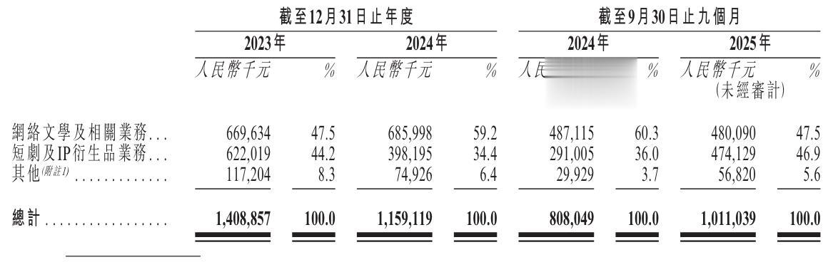 中文在线2025年前9个月来自网络文学及相关业务收入为4.8亿元,占比为47.5%;来自短剧及IP衍生品业务收入为4.74亿元,占比为46.9%。