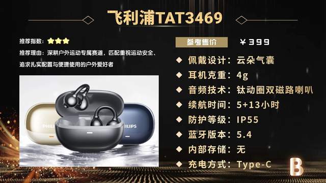 飞利浦TAT3469以原声还原与舒适佩戴为核心亮点,采用开放式不入耳设计,适合追求自然听感、隐私保护与无感佩戴的用户。