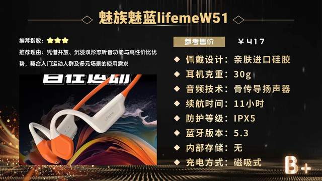 魅蓝lifemeW51主打中低端运动市场,凭借开放、沉浸双听音模式与高性价比,成为入门用户多场景使用的务实选择。