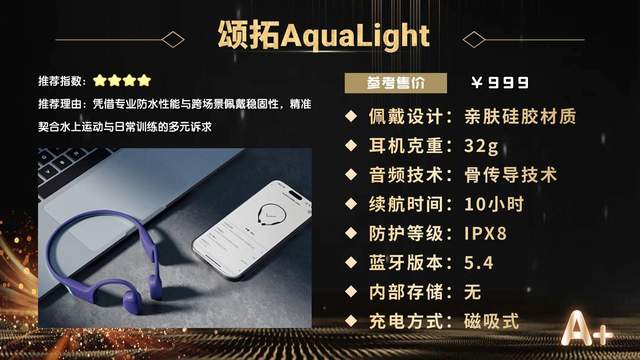 这款耳机更适合游泳爱好者、户外训练人群,是兼顾水下与陆地使用的专业型骨传导产品。