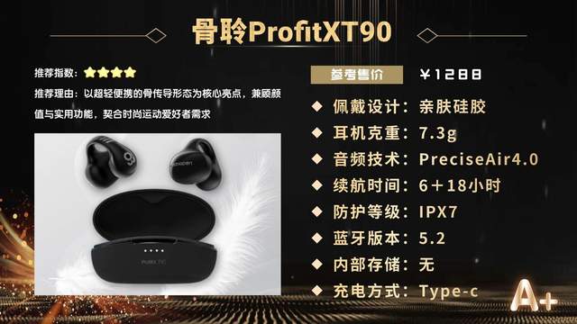 骨聆ProfitXT90小飞豆以超轻便携、小巧美观为核心卖点,在颜值与实用性之间取得平衡,面向喜欢时尚外观、舒适佩戴的轻运动与通勤用户。