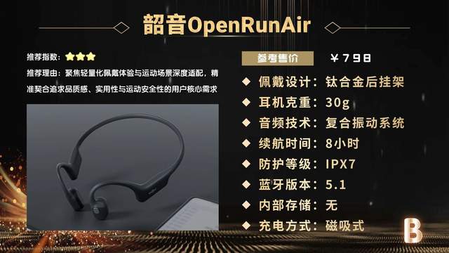 核心功能齐全,实用体验远超同价位多数产品,特别适合运动频率不高、看重性价比的新手。不用花高价就能获得稳定靠谱的骨传导体验,入门非常合适。