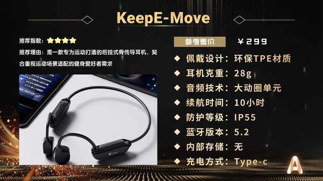 KeepE-Move专为运动场景打造,采用后挂式骨传导结构,以舒适佩戴、耐用稳定为核心优势,贴合健身爱好者的实际使用习惯。