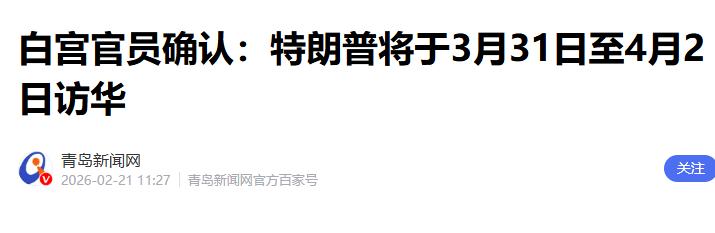 访华行程与加税令把时钟拨回2月20日,白宫那边的访华行程表是印下来了,3月31日到4月2日,三天时间,诚意似乎给足了。
