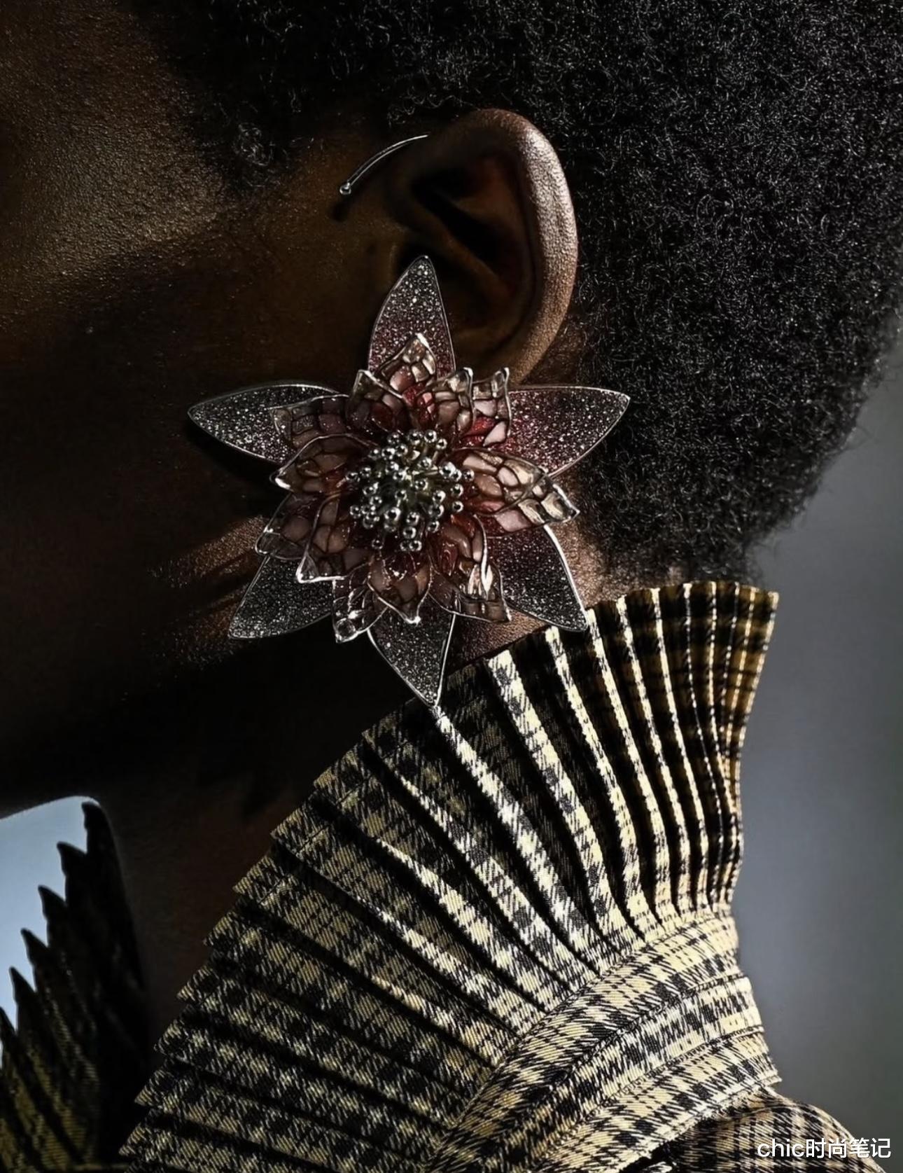 把睡莲设计成耳环,是设计师乔纳森的独特风格,用琉璃与银珠的搭配组合成立体的花朵形象,虽略显浮夸,但自带优雅与华贵,参加晚宴时佩戴极佳。