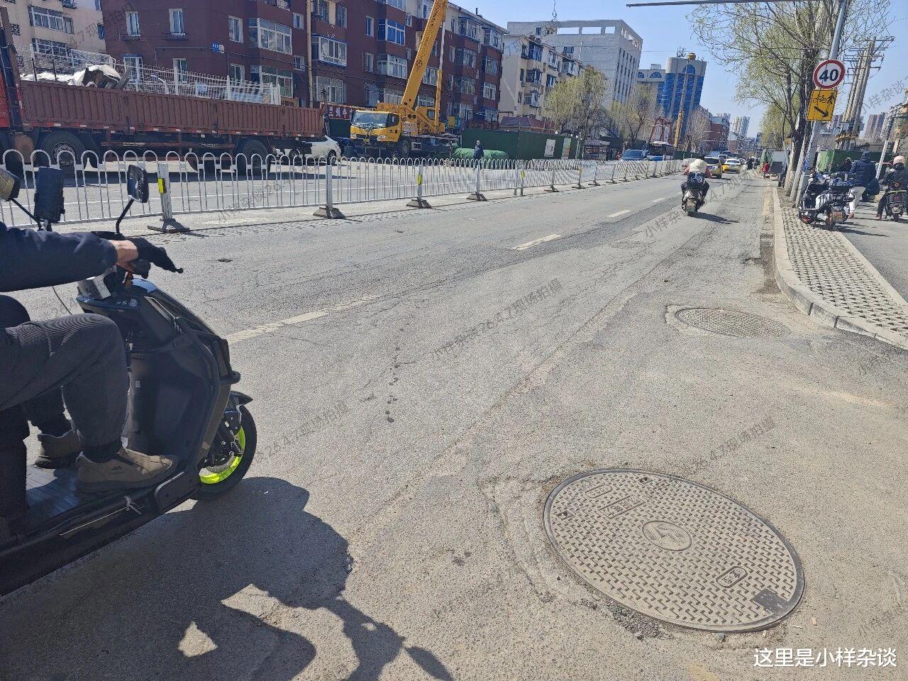 (砂阳路,图片来源于2026年4月7日现场拍摄)这条街机动车道上井盖也不少,不少都塌陷了,每个车落后都“咣当”一下。