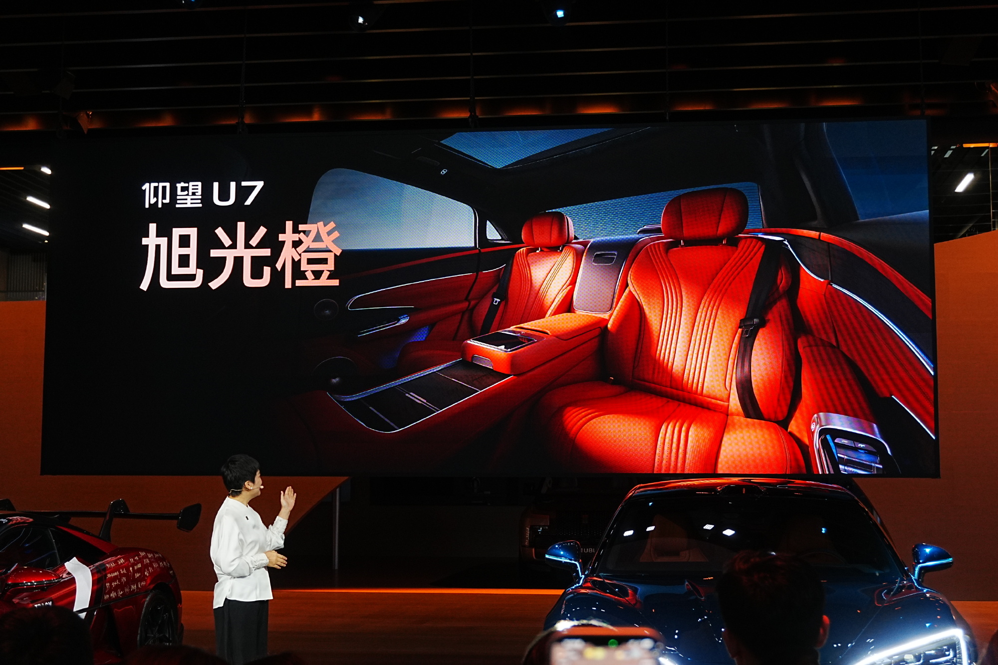 同时,今天车展现场仰望U7也发布了全新的星河蓝车漆、旭光橙内饰及20英寸饼状锻造轮毂,作为仰望品牌科技属性的担当,仰望U7也得到了潘展乐的认可,咱游泳冠军现场表示:U7的速度让他“很上瘾”!
