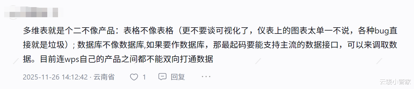 很多用户吐槽,多维表格像个“半成品”,功能定位模糊,你说它是表格吧,它没传统表格那么灵活;你说它是数据库吧,它又连基础的数据接口都做不到。