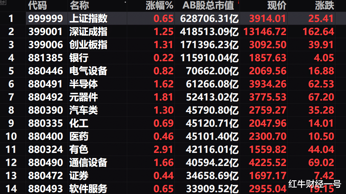 一、周一A股迎来本月开门红,3900终于再次收入囊中,全天量能1.89万亿,与我预估的下限1.88万亿基本一致,银行、电气设备及半导体等前十大行业市值板块悉数收涨,如此集体拉升,A股能不涨吗?
