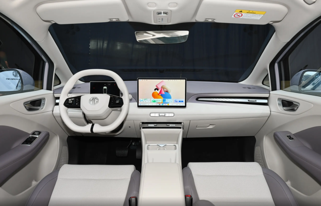 内饰方面,新款名爵MG4的前排也有明显的变化,整体的设计风格更符合当下新能源市场的潮流。例如双拼色的低饱和度内饰配色,使得车内显得更加温馨;换挡方式也从之前副仪表台区域的旋钮式,更换为集成在方向盘上的电子怀挡,使用起来不仅更方便,而且还给原来的位置留下了更多的储物空间。除此之外,悬浮式的中控屏尺寸更大,同时内部还采用了与OPPO联合开发的一套车机系统,整体的功能性、流畅度,以及UI界面的处理,也都要比老款更符合新能源车的产品定位。