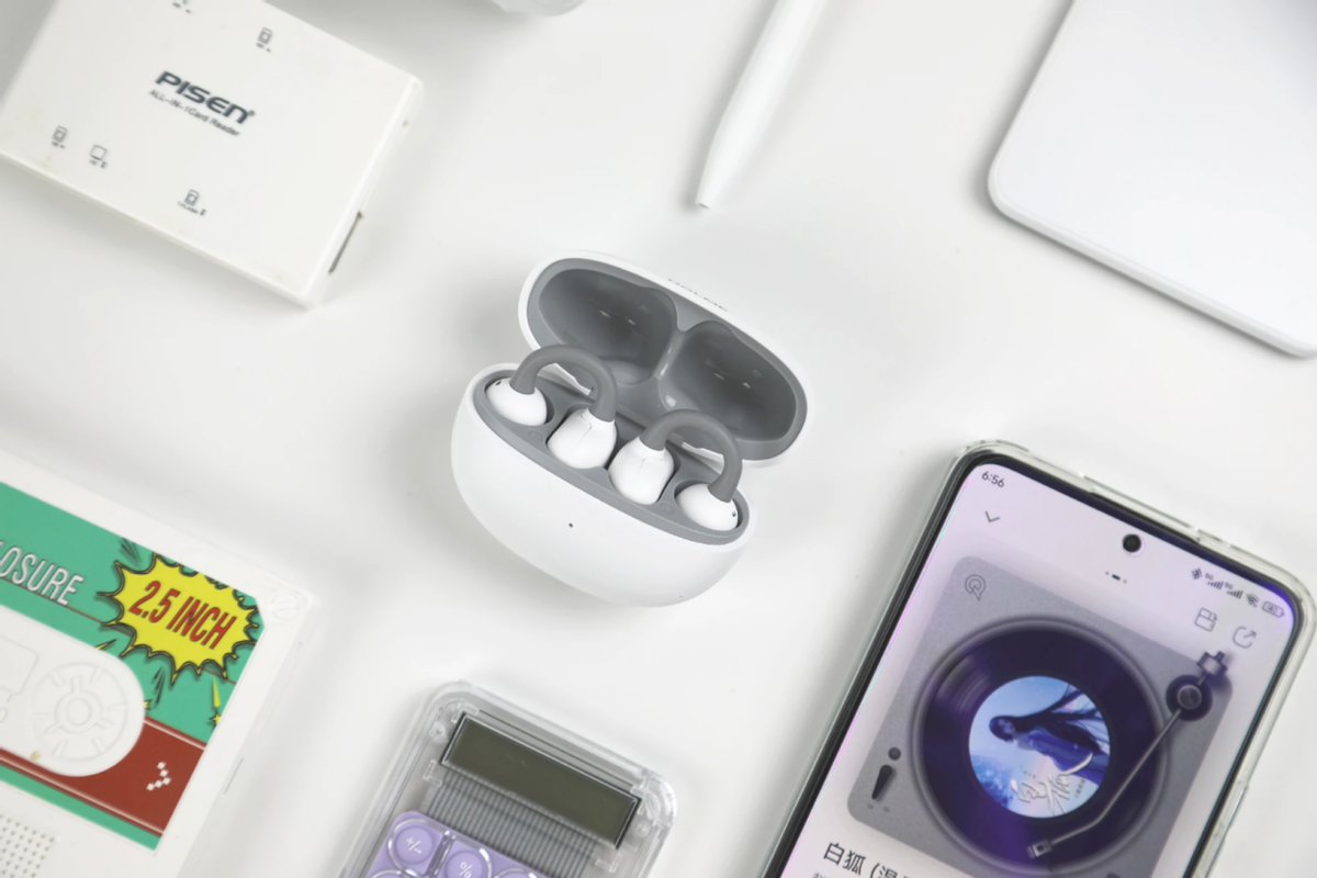 耳夹式耳机就是不用塞进耳朵里,像耳环一样夹在耳廓上听歌。它不堵塞耳道,佩戴舒适无压迫感,还能听到周围环境声,适合运动或办公时使用。